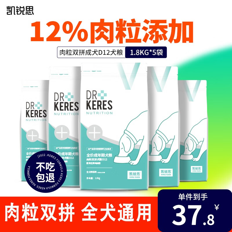 凯锐思 狗粮肉粒双拼粮D12 成犬小型犬泰迪比熊柯基全价通用型犬粮 【肉粒双拼粮18斤】¥189