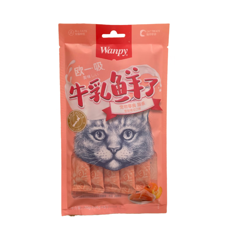 Wanpy顽皮Happy100猫条噜吸吸猫条猫粮猫咪湿粮拌饭成猫幼猫营养猫零食 香甜南瓜味14g*5支/袋