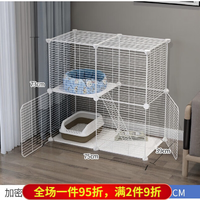 猫笼子 双层大号别墅随变DIY魔片宠物围栏铁网自由组装冠强宠物 2个月内猫加密长75cm宽39cm高73 猫笼