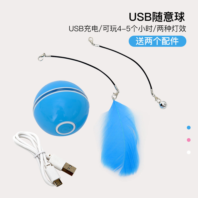 华元 逗猫球猫咪逗猫棒激光笔猫咪玩具自动智能电动玩具球宠物猫用品 升级充电款-蓝【带羽毛和铃铛两根】