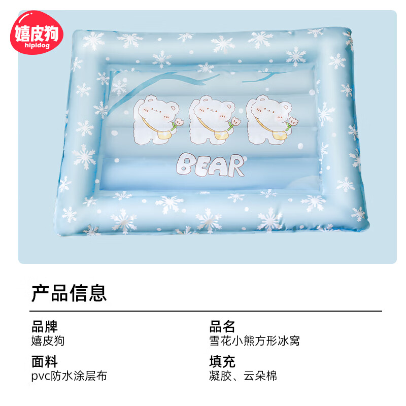 嬉皮狗宠物冰垫夏季降狗冰窝防撕咬猫咪凉垫睡垫狗窝夏天凉垫子 雪花小熊 S-小号(建议8斤内)【速发】