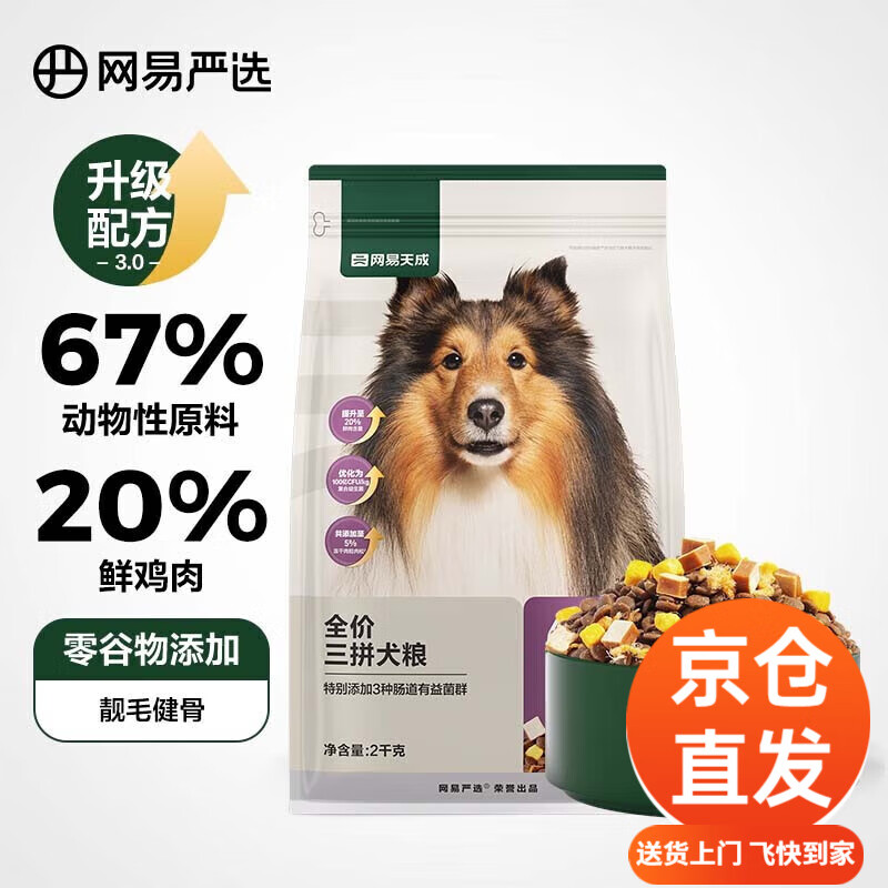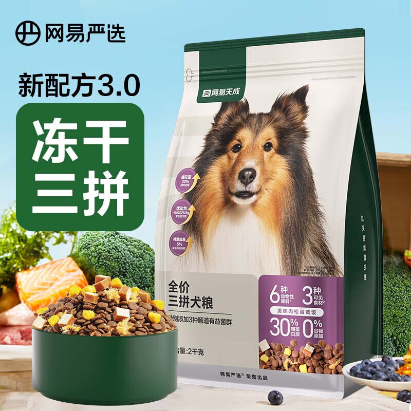 网易严选全价三拼犬粮3.0升级狗粮 无谷物肉粒三文鱼牛肉鸡肉鸭肉柯基泰迪 三拼狗粮2kg