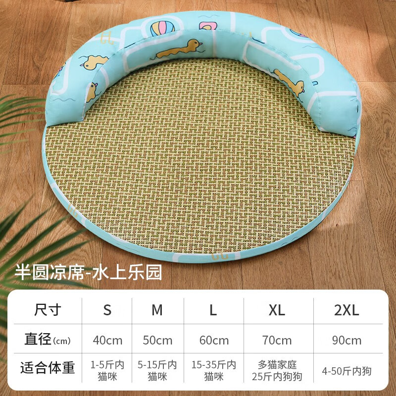 Kimpets半圆凉席窝夏季猫窝可拆洗宠物夏天凉窝狗窝猫床狗狗床猫咪垫子睡垫沙发 半圆凉席-水上乐园 M(适合15斤内猫咪)80%萌主选择