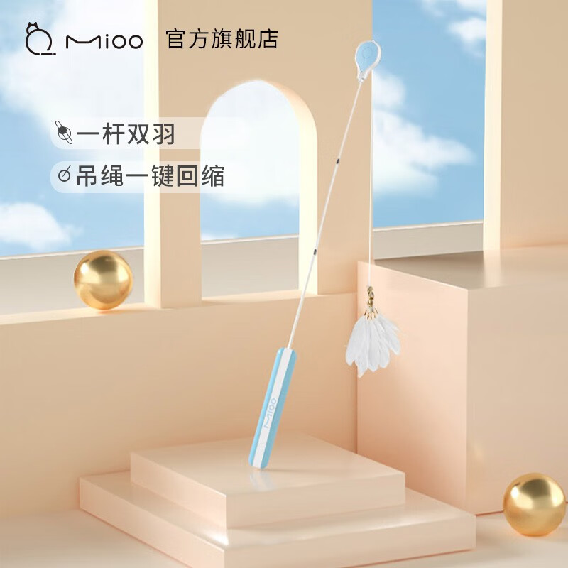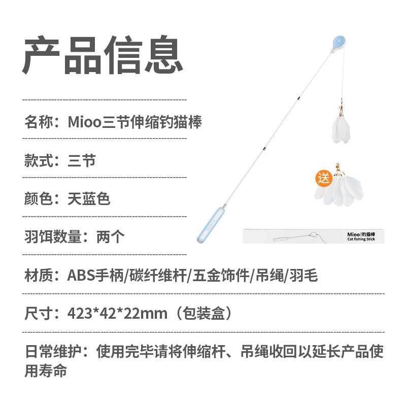 Mioo钓猫棒可调节带铃铛耐咬幼猫成猫咪用品加长杆逗猫玩具替换羽毛