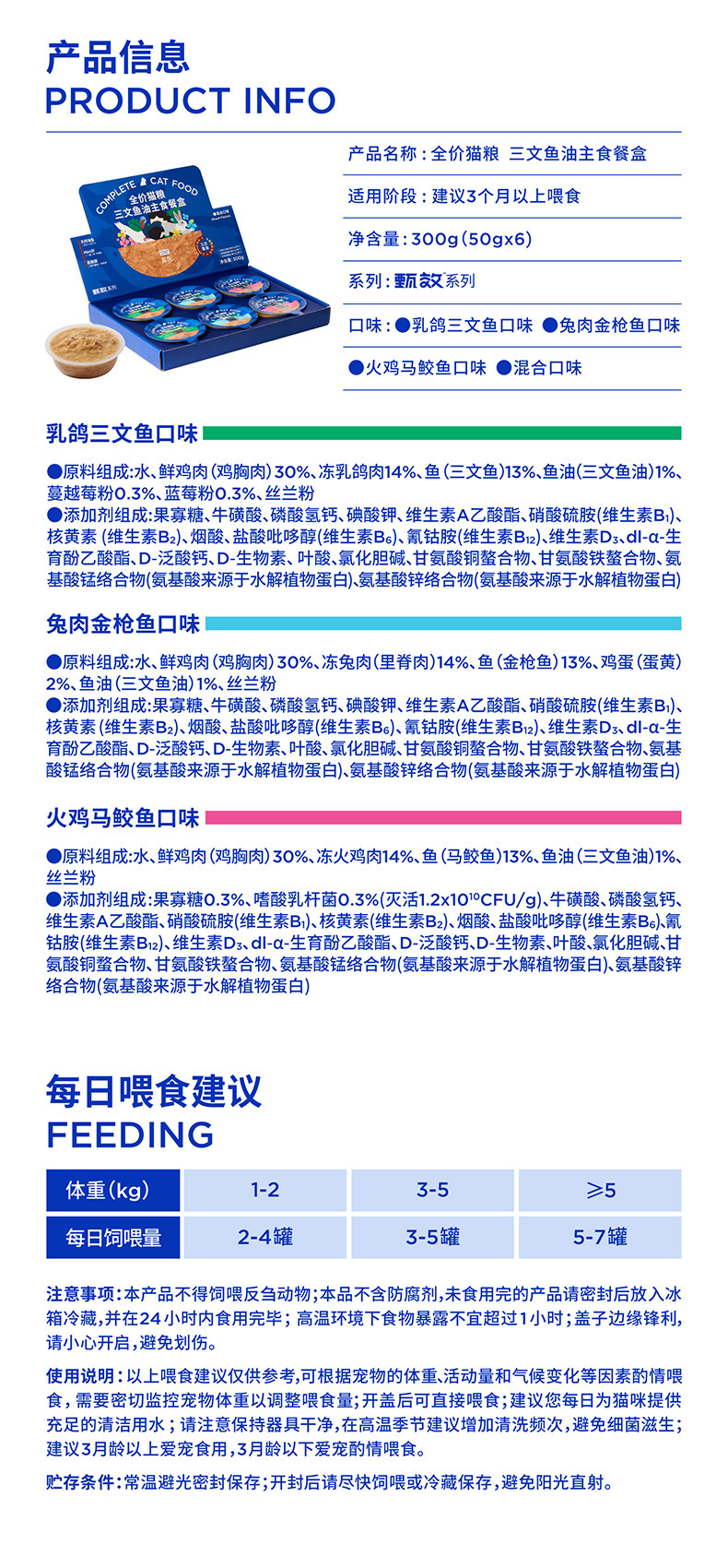 蓝氏 甄效系列全价猫粮三文鱼油主食餐盒50g/300g