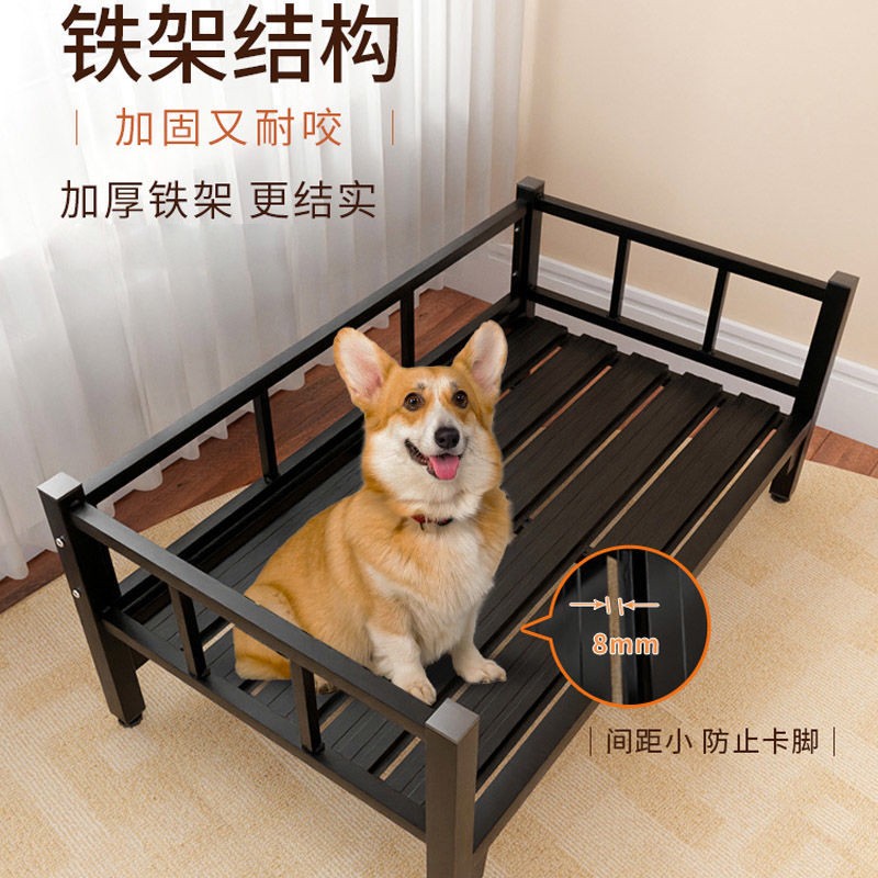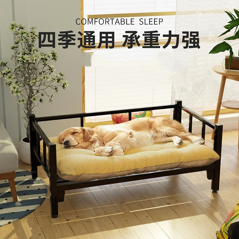 狗床狗狗行军床宠物床狗窝离地床铁床防潮防咬耐咬狗窝四季通用小 黑色床可拆洗睡眠面棉垫XL100*60