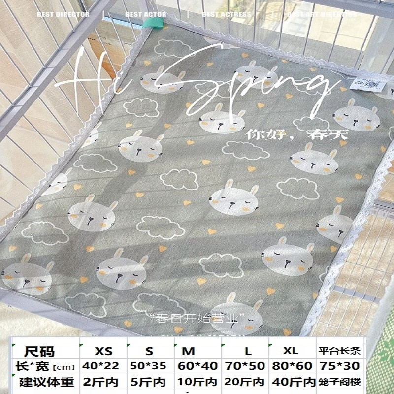 爵氏猫垫子猫窝狗猫咪被子夏季床垫宠物凉席垫四季平台棉垫狗狗毯子 花边灰色小兔 -(凉席款) XS号(建议体重3斤内)