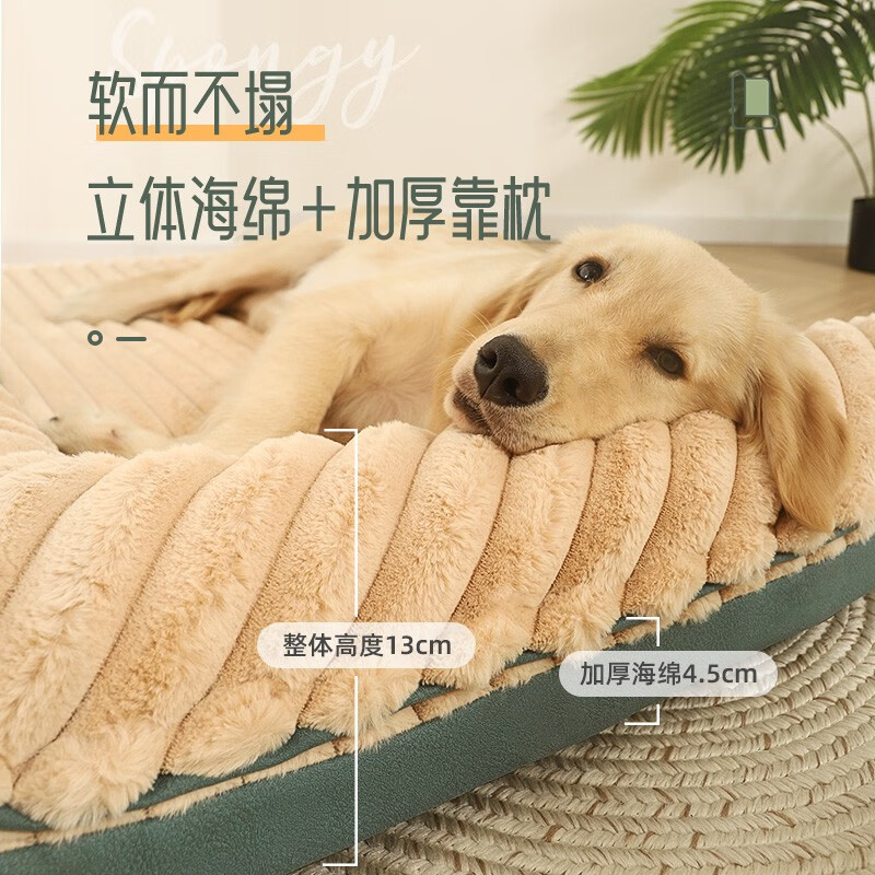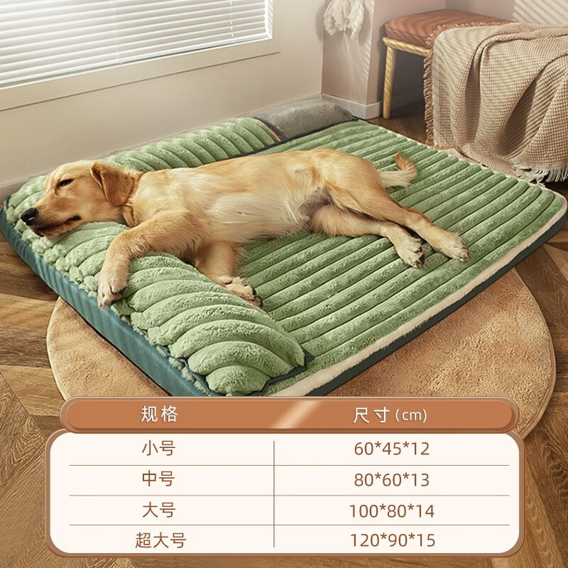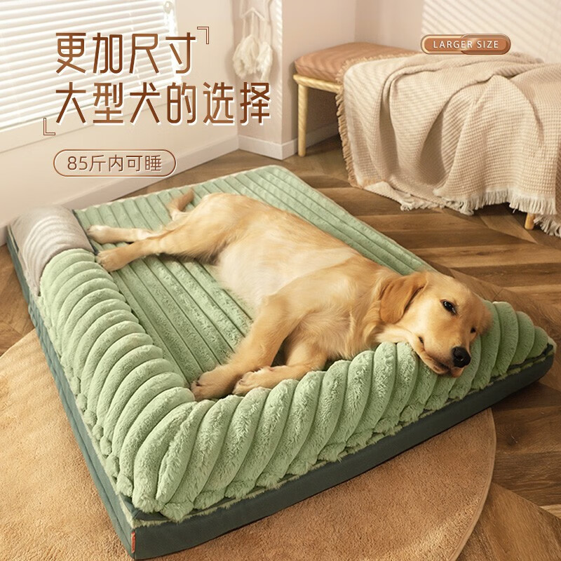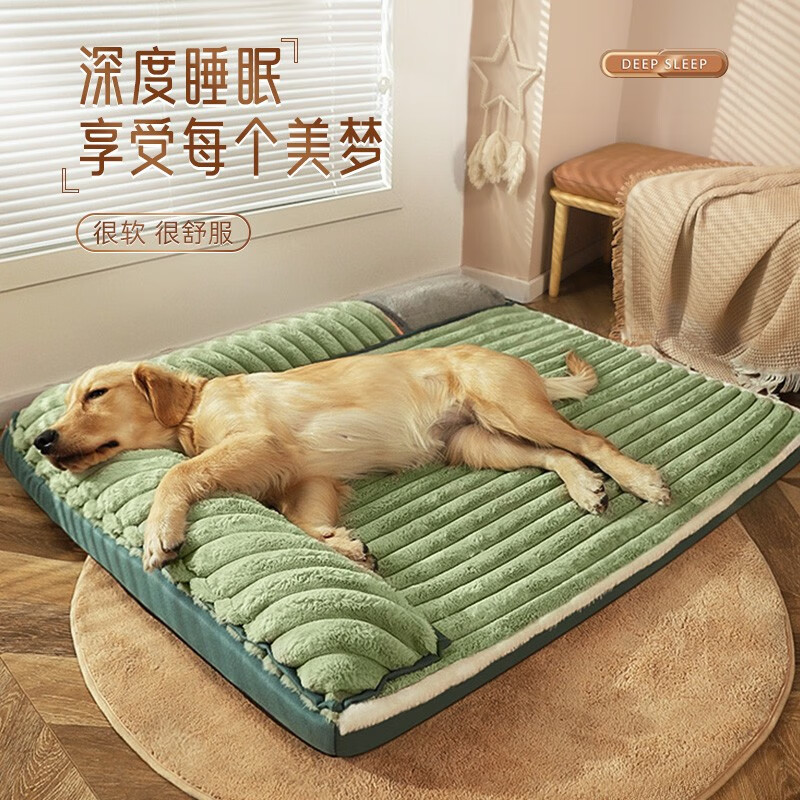 hoopet狗窝四季通用冬季保暖大型犬金毛拉布拉多睡垫狗狗垫子宠物的狗屋 兔绒双面靠狗窝绿 2XL(60斤内)