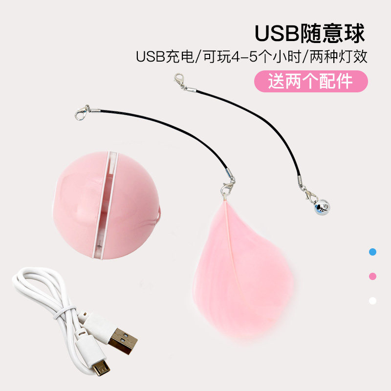华元 逗猫球猫咪逗猫棒激光笔猫咪玩具自动智能电动玩具球宠物猫用品 升级充电款-粉【带羽毛和铃铛两根】