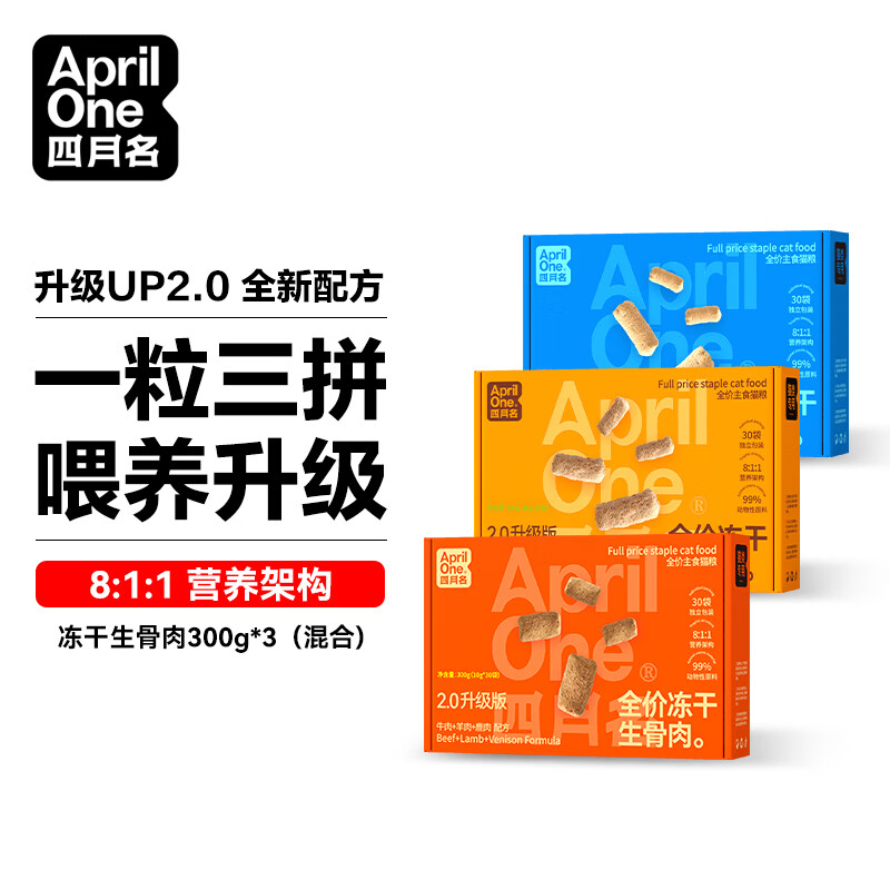 四月名全价生骨肉冻干10克小袋装次抛全阶段主食冻干3拼营养全阶段猫粮 混合装 900g