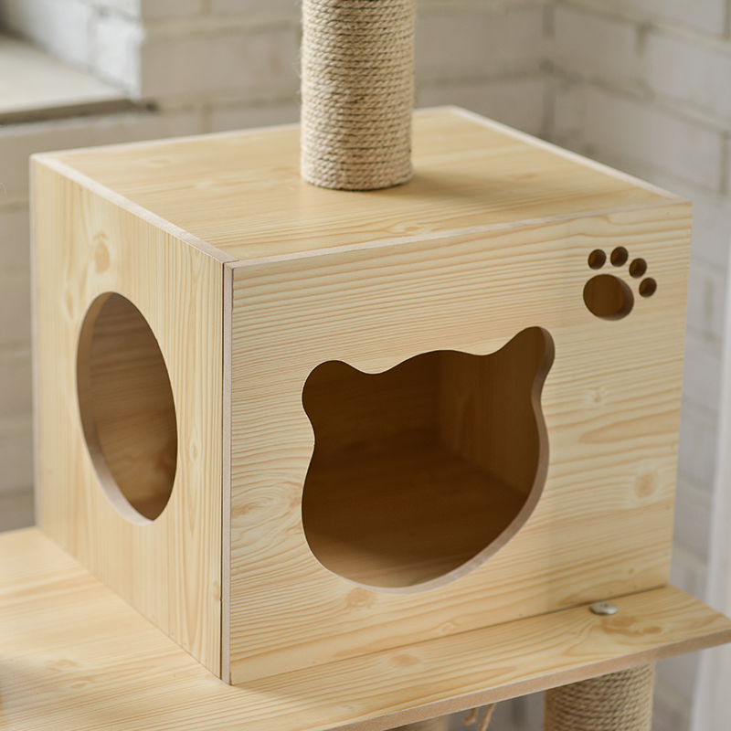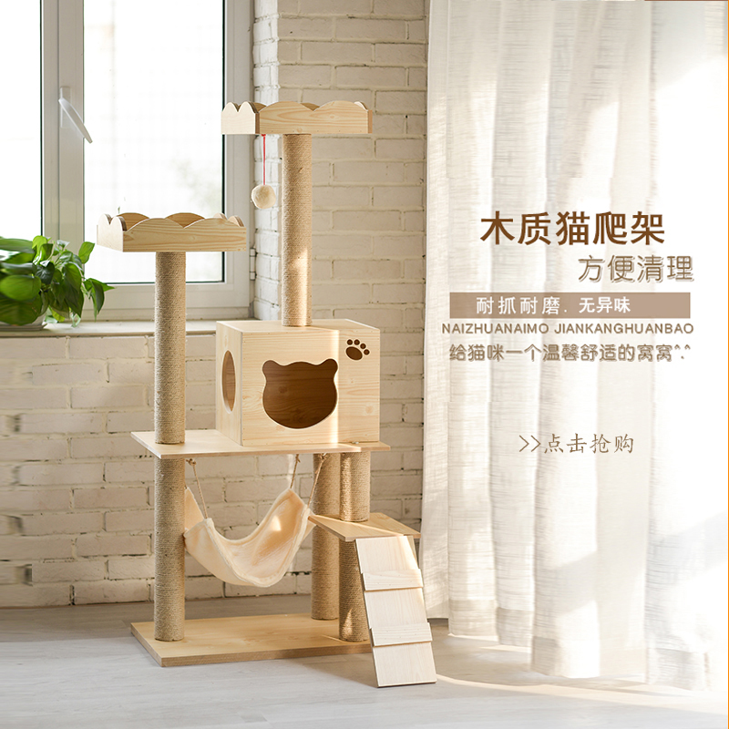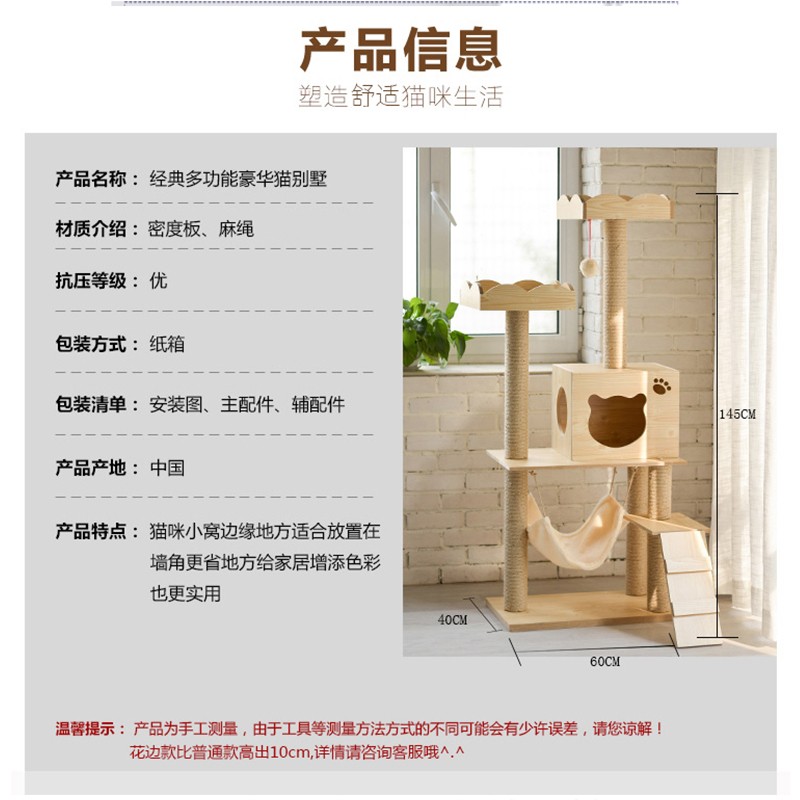 猫爬架猫抓板 木质宠物猫咪用品玩具大型豪华剑麻猫架子猫抓柱跳台猫窝别墅 M015密度花边款