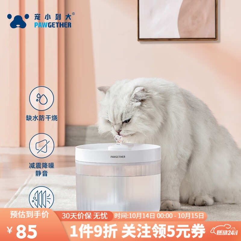 宠小到大智能宠物饮水机降噪自动循环流动活水猫咪饮水机喝水器过滤防干烧 经典白-防干烧款