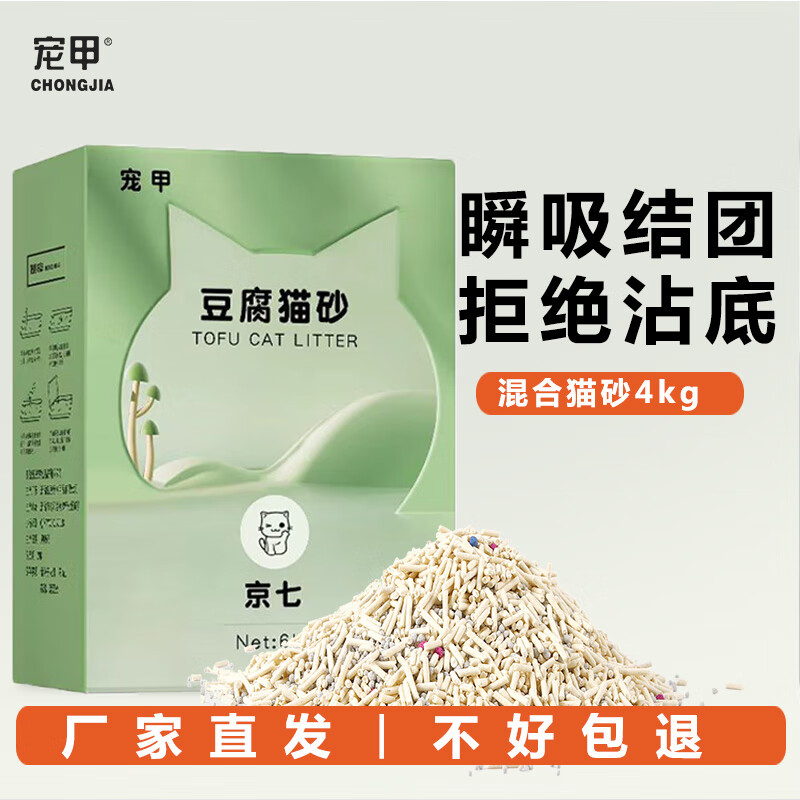 宠甲猫砂4kg混合豆腐膨润土猫砂除臭低尘结团豆腐砂猫砂猫咪用品猫沙 3合1混合猫砂 | 4kg