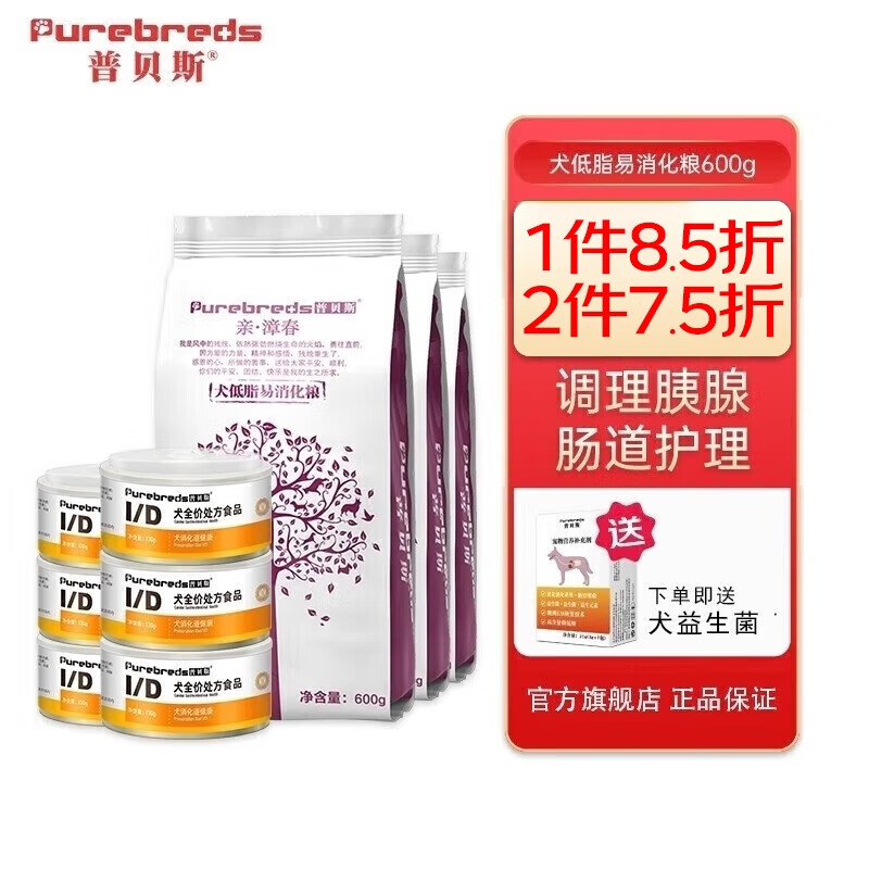 普贝斯易消化低脂狗粮 胰腺炎肠胃道狗粮 全价狗粮 控制体重配方主犬粮 【罐头粮套装】600*3 ID罐头*6