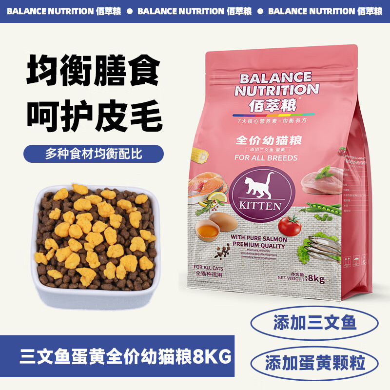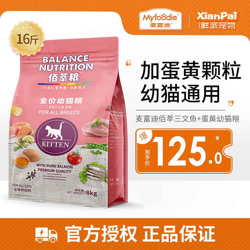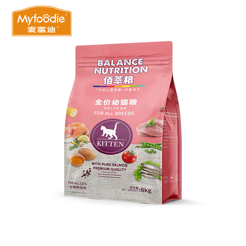 麦富迪佰萃全价猫粮 蓝猫布偶天然粮通用型猫饭 三文鱼 蛋黄幼猫粮8kg