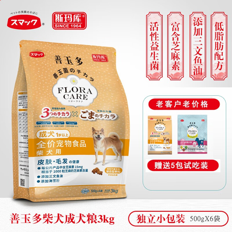 斯玛库日本配无谷益生菌护肠胃柴犬专用粮秋田犬全阶段通用狗粮 柴犬成犬粮3kg(临期24年6月)