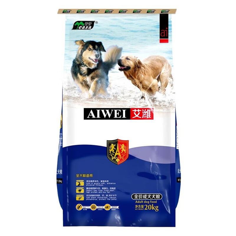 伊萨(YEASA)伊萨艾潍狗粮10kg20kg成犬幼犬奶糕粮泰迪金毛萨摩耶全犬种通用型 成犬粮20kg 全犬种