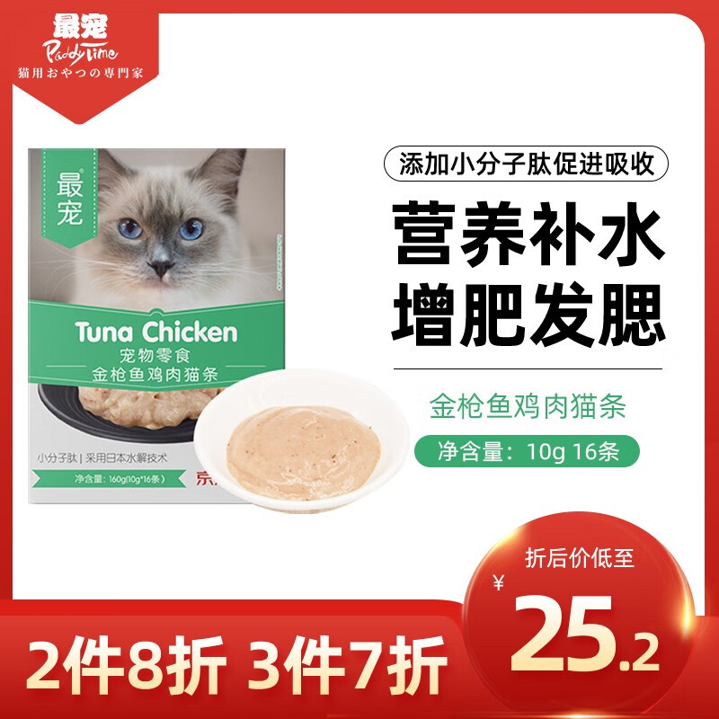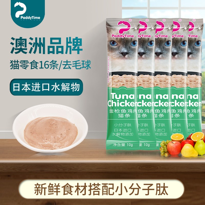 澳洲品牌 最宠(Paddy Time)猫条猫零食猫咪湿粮幼猫猫条发腮营养流质食品猫罐头增肥肉泥猫粮 金枪鱼鸡肉猫条10g*16