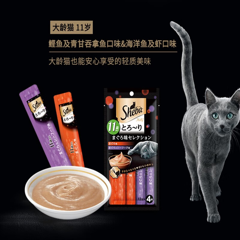 希宝(Sheba)进口猫零食猫条6包猫咪湿粮包成猫营养软包大龄猫 (大龄猫)鲣鱼及青甘吞拿鱼 海 6包
