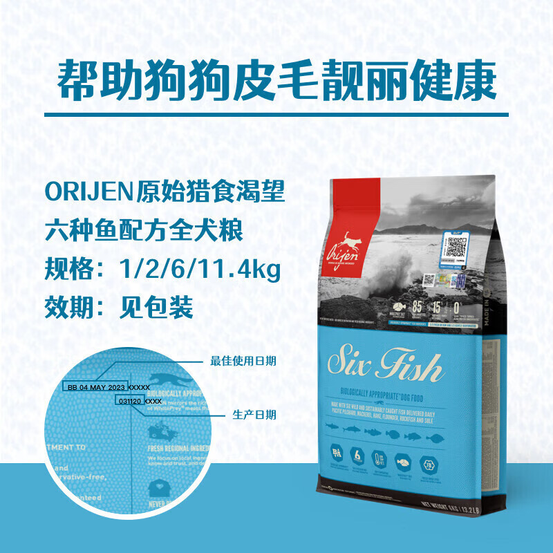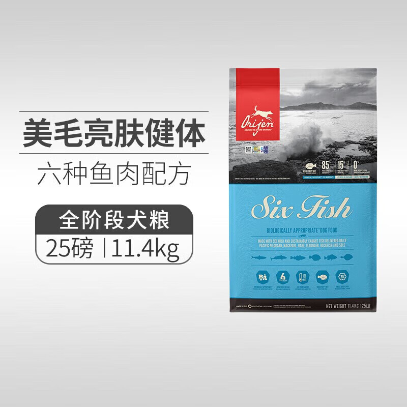 渴望(Orijen)狗粮 成犬幼犬粮 六种鱼犬粮 通用狗干粮 加拿大进口全价天然无谷犬粮