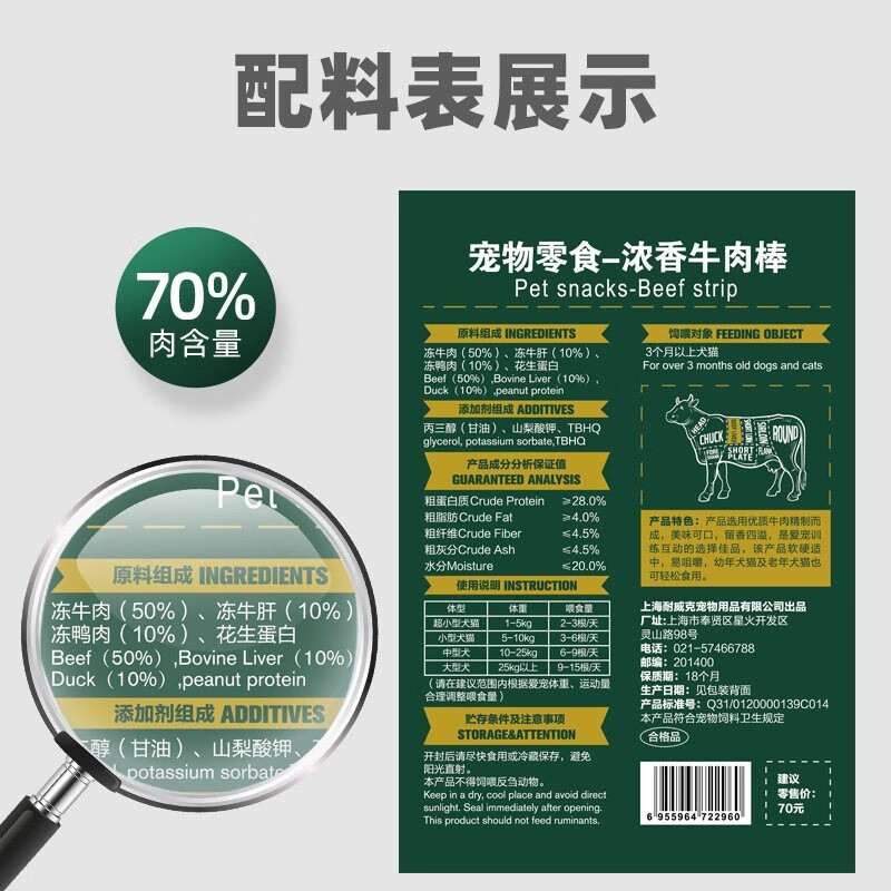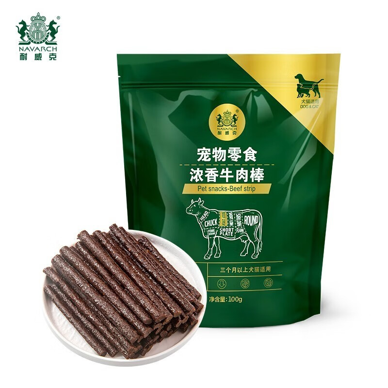 耐威克狗狗零食 宠物磨牙棒 鸡肉干训练奖励 幼犬泰迪比熊金毛柴犬洁齿 浓香牛肉棒100g