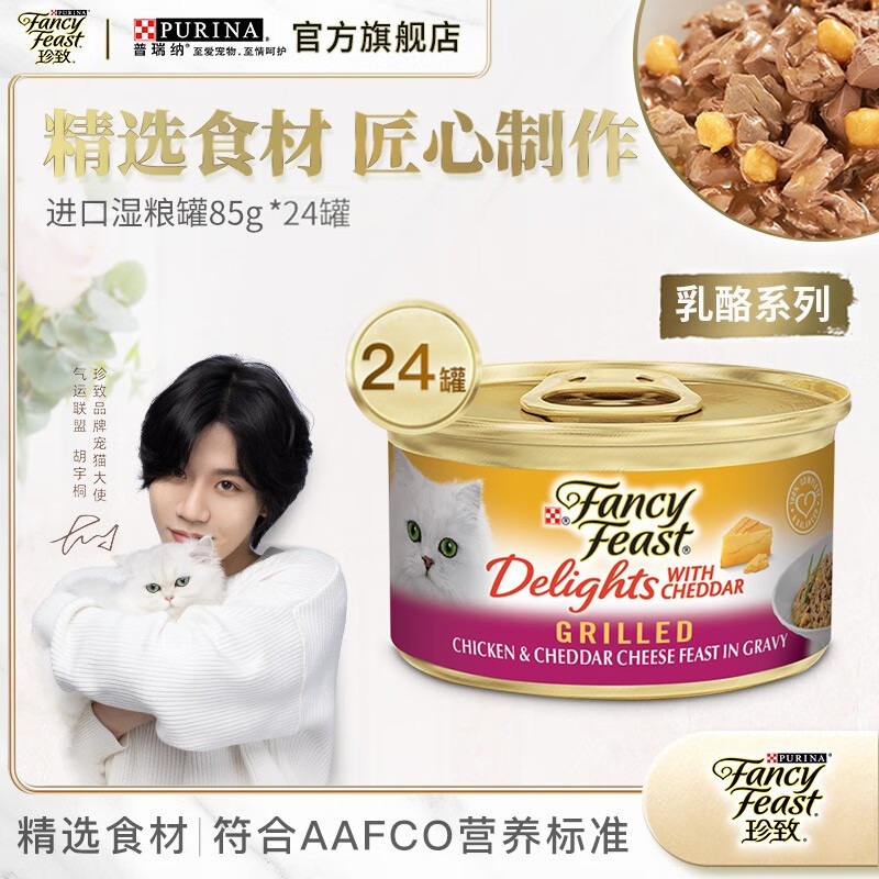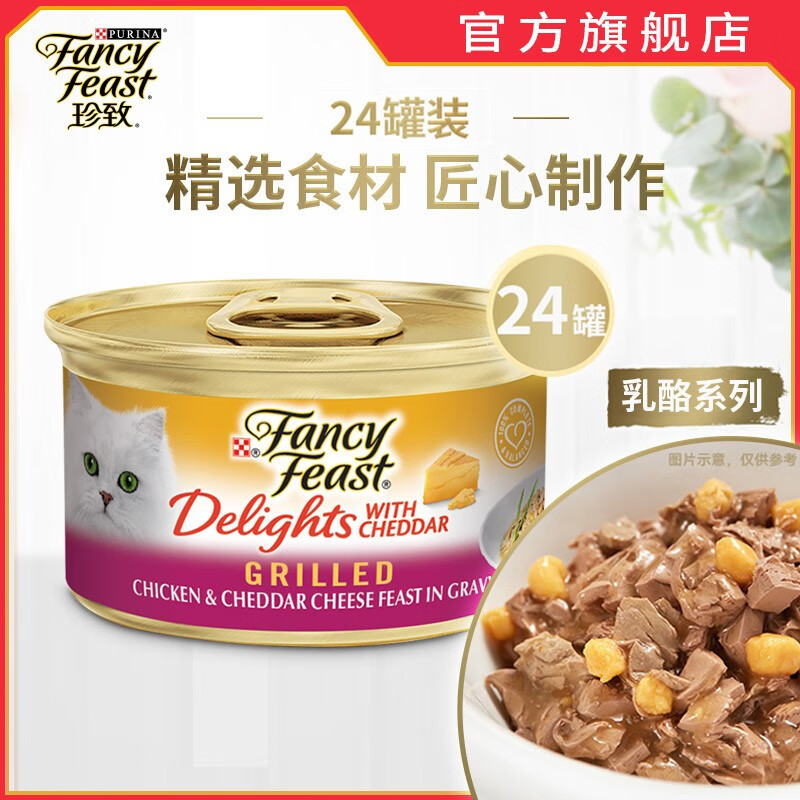 珍致(FancyFeast)猫罐头 美国进口成猫猫湿粮主食级猫罐头 85g*24 乳酪系列(鸡肉 添加奶酪)