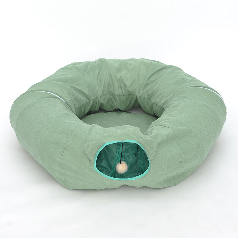 hoopet猫玩具转盘猫窝四季通用自嗨玩具球半封闭式可拆洗太空舱窝高颜值防侧翻凹碗猫咪用品 丝绒圆款猫隧道 15斤内全年龄猫咪通用