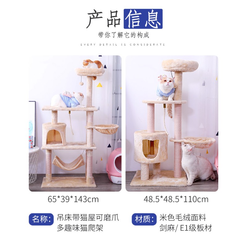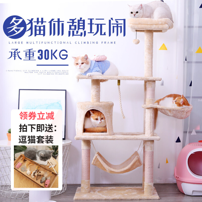 Hoopet 猫爬架小型猫架子猫窝一体剑麻猫抓板耐磨猫抓柱猫玩具猫跳台猫树 加大加宽 豪华升级款 趣味猫爬架