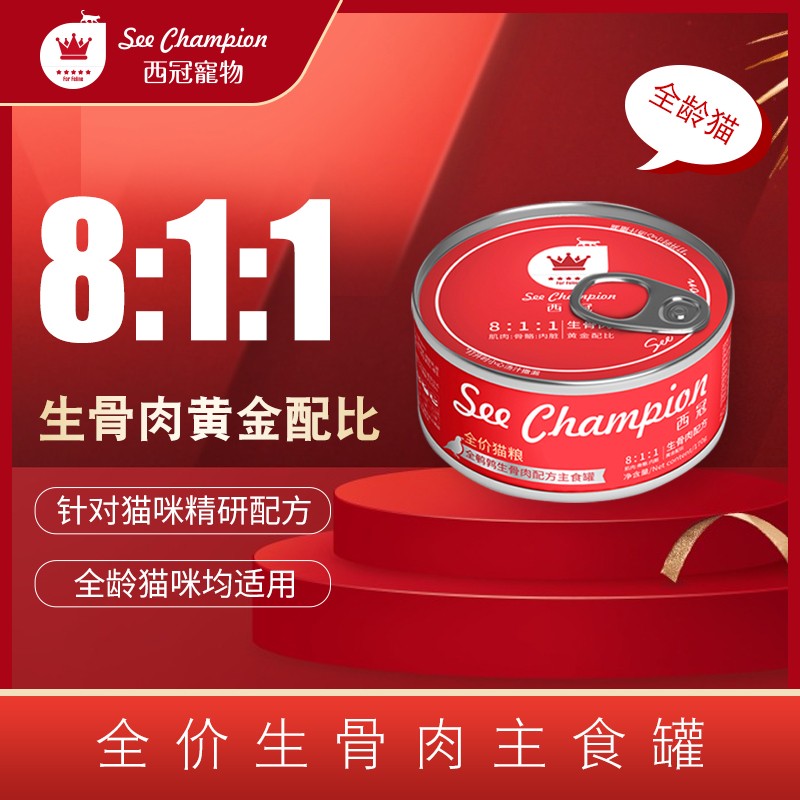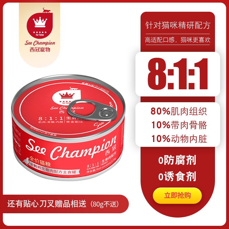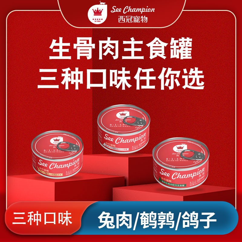 西冠主食猫罐头成幼猫湿粮生骨肉兔肉/鸽子/鹌鹑罐头营养增肥低敏 (尝鲜80克*3)鹌鹑/鸽子/兔肉各1