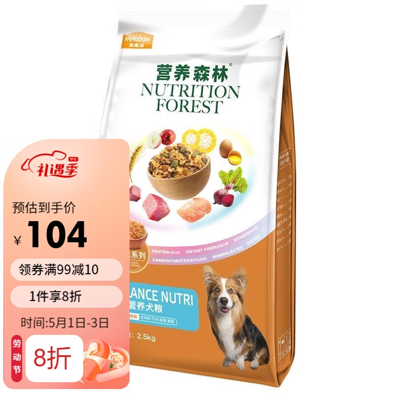麦富迪狗粮 营养森林肉松犬粮 成犬幼犬通用泰迪金毛鲜鸡肉肉松粮 5kg(2.5kg*2)