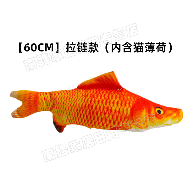 猫咪玩具自嗨解闷猫薄荷磨牙棒耐咬幼猫抱枕仿真鱼逗猫棒宠物用品 [鲤鱼款超大号]约60C/M有拉链(内