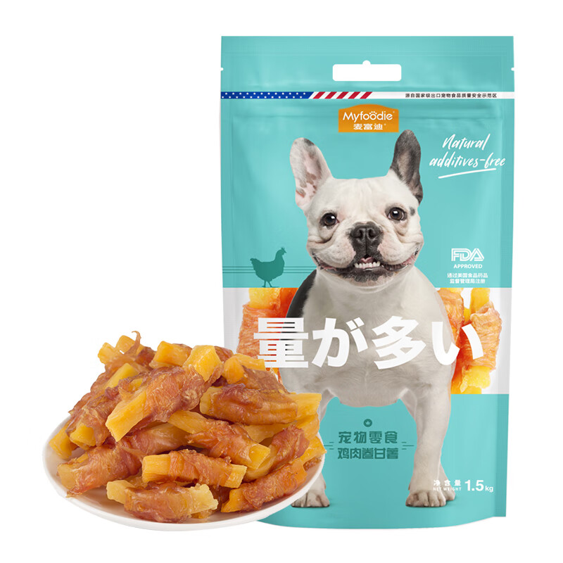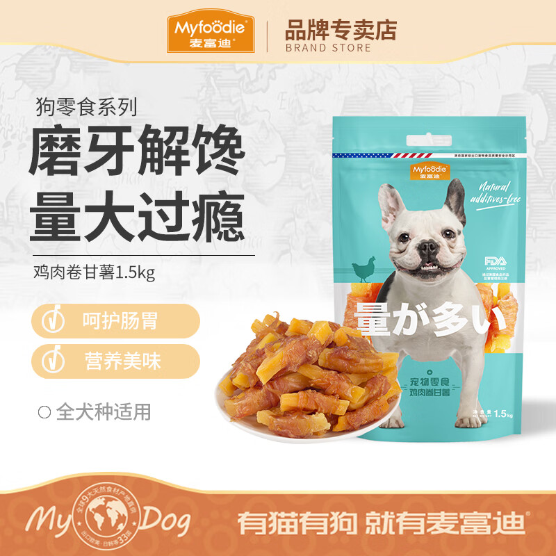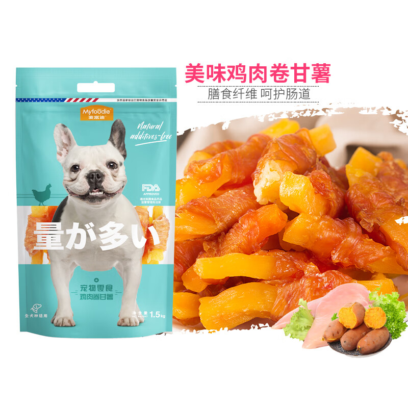 麦富迪狗零食 鸭胸肉干鸡肉干牛肉棒宠物磨牙训犬奖励礼包 量超多|鸡肉卷甘薯1.5kg