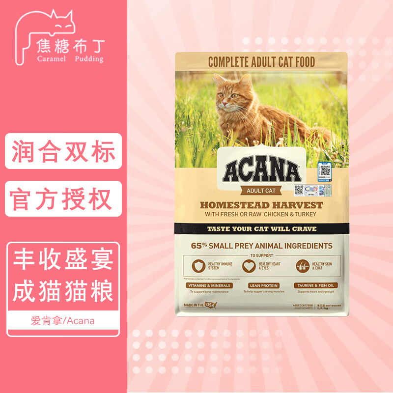 爱肯拿(ACANA)猫粮鸡肉味鱼肉成猫 丰收家园全阶段无谷成猫增肥美毛进口猫粮 丰收家园1.8kg(成猫2024.1.19)