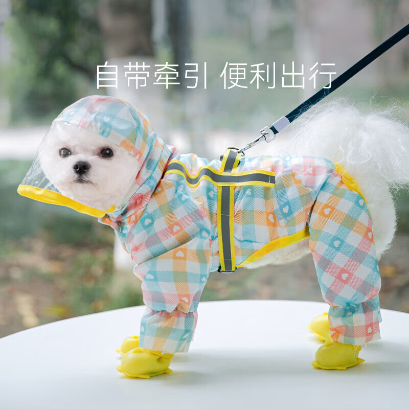 搭啵兔小狗狗雨衣中小型犬全包四脚雨衣时尚格纹反光条外出遛狗宠物衣服 粉色格纹