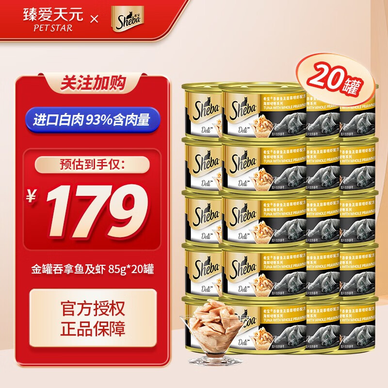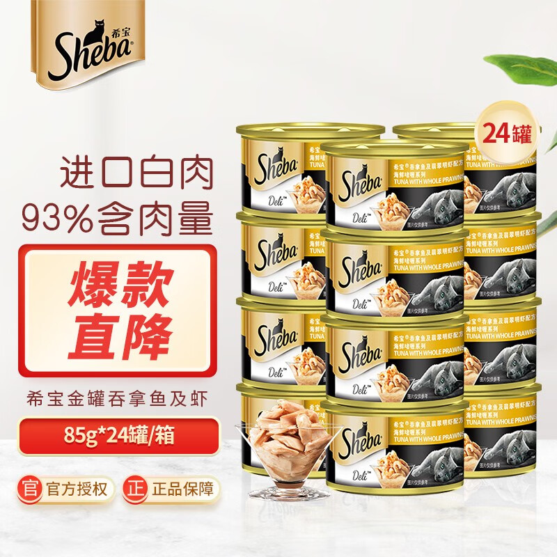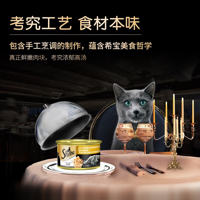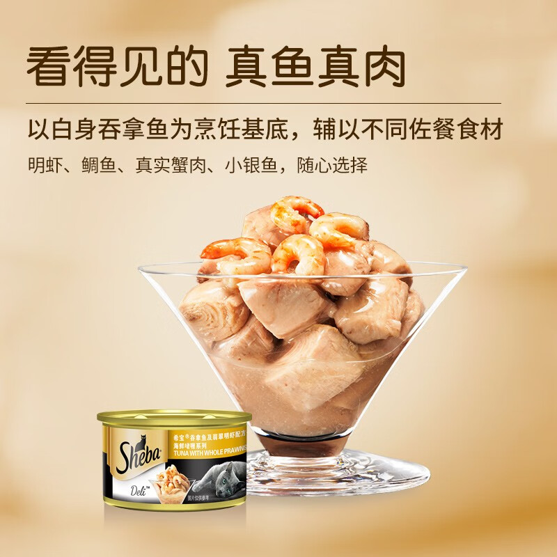 希宝(Sheba)猫罐头sheba猫湿粮猫零食 吞拿鱼及虾 海鲜汤汁85g*20