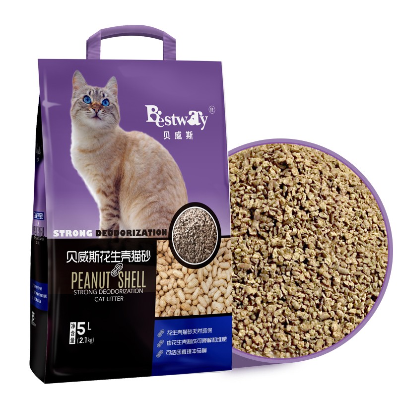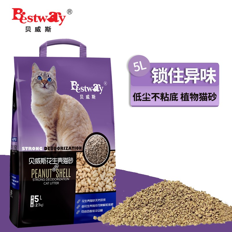 贝威斯花生壳猫砂2.1kg植物猫砂低尘祛味除臭可降解可冲厕所(可当猫砂伴侣混合使用)