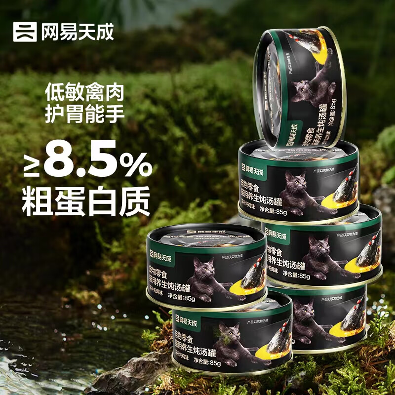 网易天成 宠物零食猫零食增肥发腮湿粮猫用养生炖汤罐 滋补乌鸡罐 85g*6罐