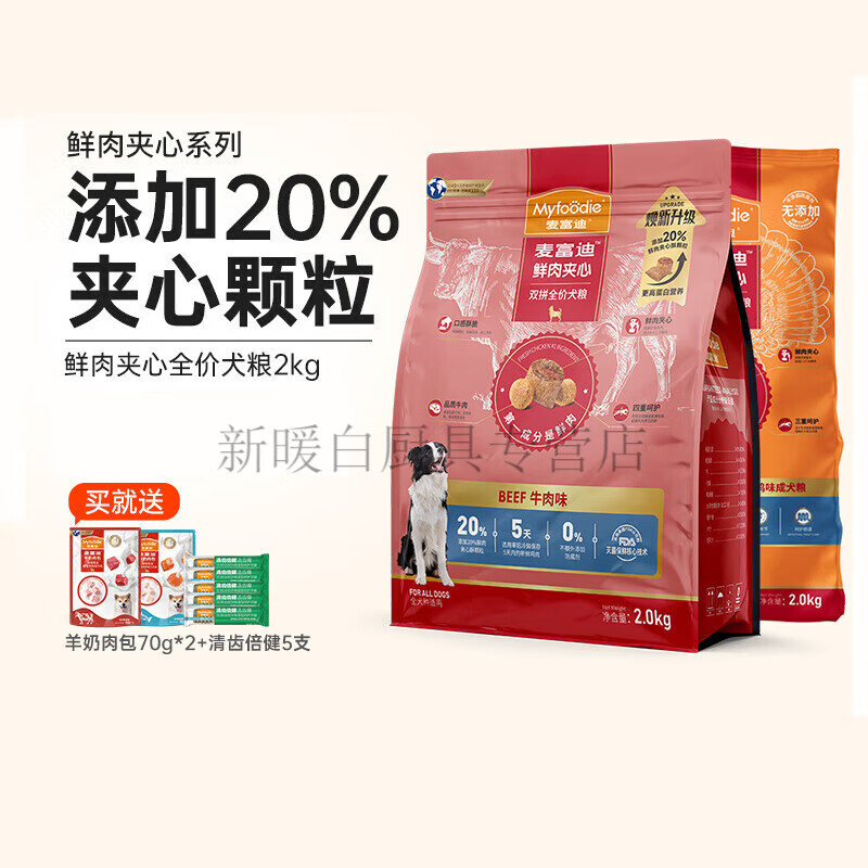 麦富迪(Myfoodie)麦富迪狗粮成犬通用型2kg牛肉夹心双拼泰迪柯基金毛小型幼犬4斤装 【升级款20%牛肉鲜肉夹心】成犬 2kg