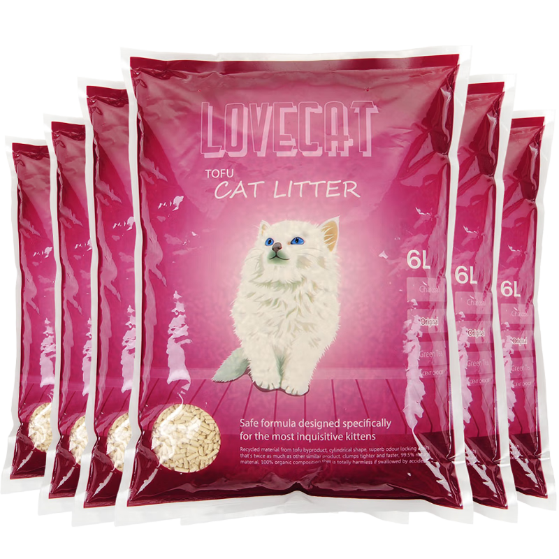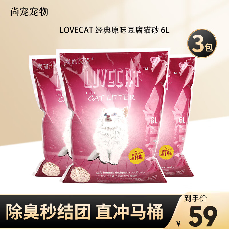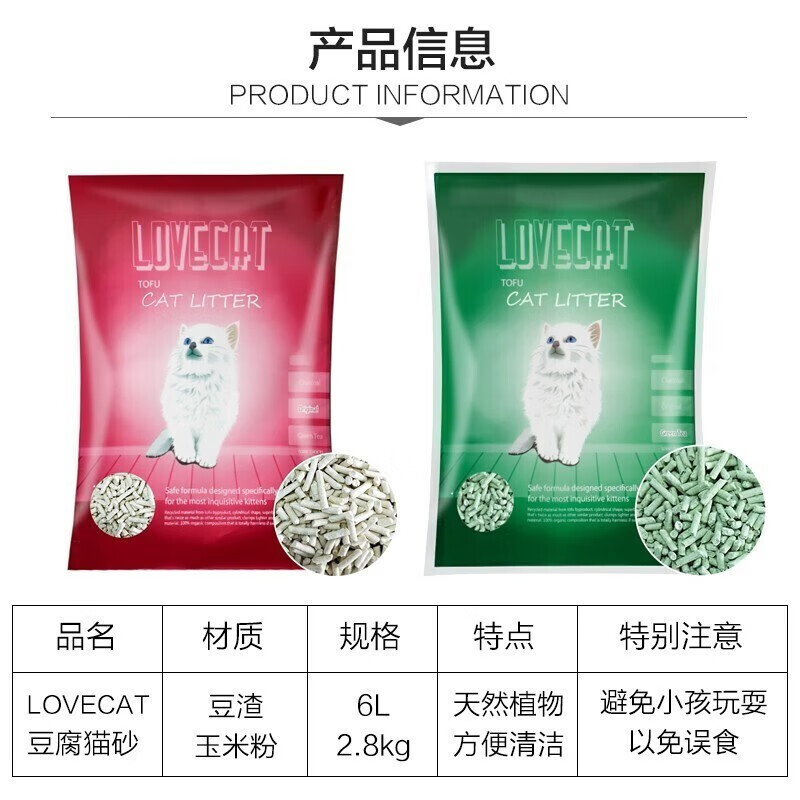 爱宠爱猫猫砂 love cat猫砂 原味绿茶青竹豆腐猫砂除臭无尘易结团可冲马桶 原味豆腐猫砂 5.2斤*3包
