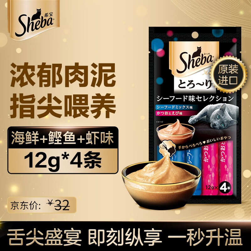 希宝(Sheba)猫零食成猫猫条原装进口情感互动 海鲜 鲣鱼 虾12g*4条