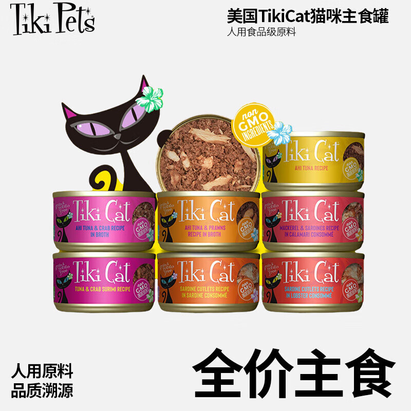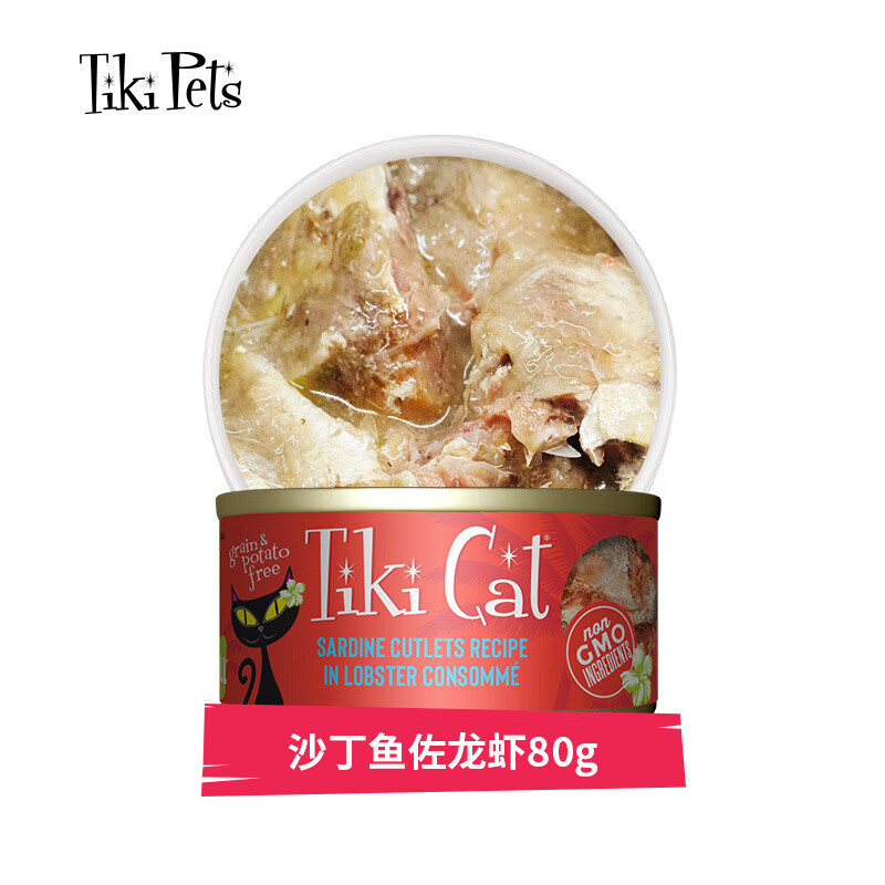 Tiki Cat主食猫罐156g肠胃调理宠物罐头进口全阶段鸡肉营养 【沙丁鱼肉排 龙虾】 80g