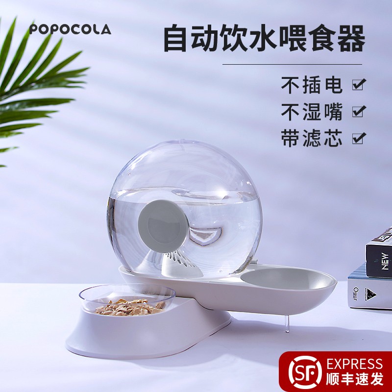 POPOCOLA 宠物智能自动饮水机狗狗猫咪饮水机不插电猫咪狗狗喝水喂水神器狗狗猫猫自动循环喂水 饮水喂食一体机