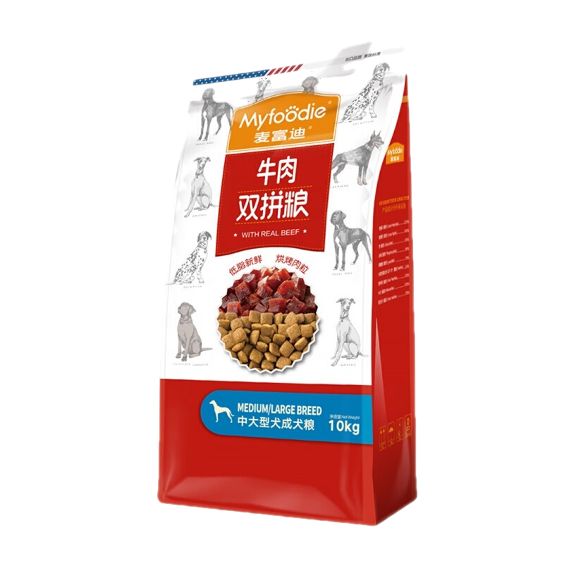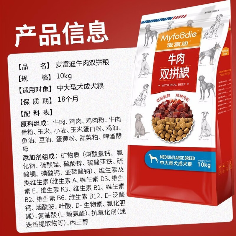 麦富迪(Myfoodie)狗粮牛肉双拼中大型狗粮天然粮金毛萨摩耶哈士奇狗粮 中大型犬成犬粮10kg