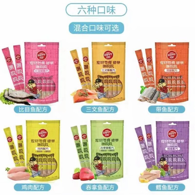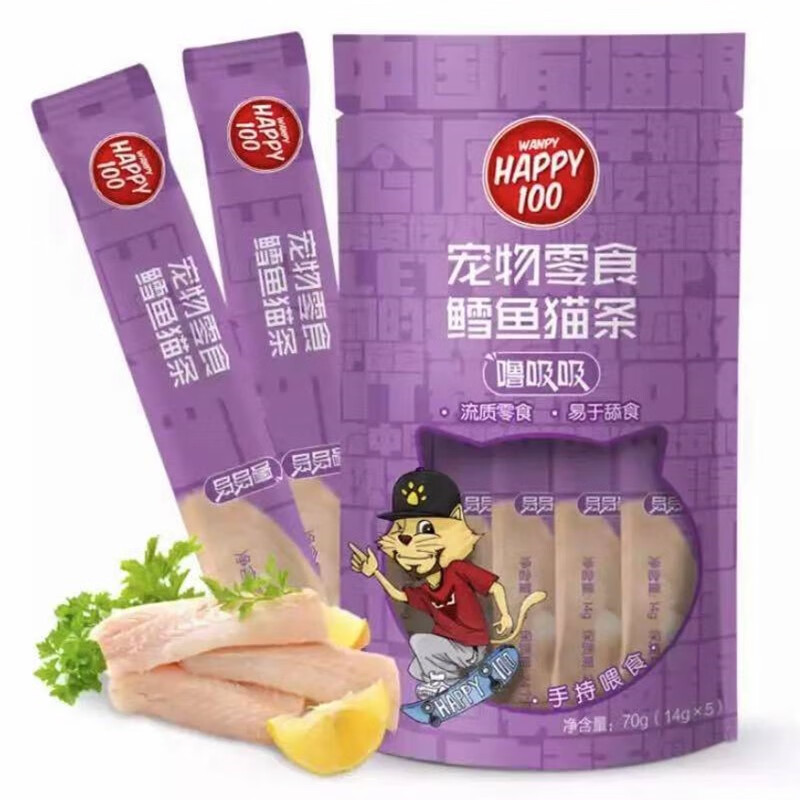 Wanpy顽皮Happy100猫条噜吸吸猫条猫粮猫咪湿粮拌饭成猫幼猫营养猫零食 鳕鱼14g*5支/袋