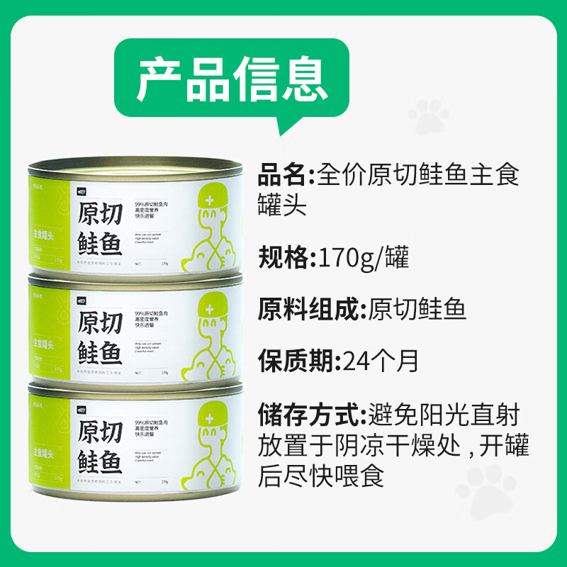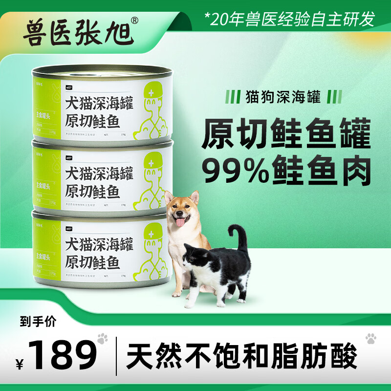 兽医张旭 原切鲑鱼猫罐头狗罐头主食湿粮 猫咪零食护肤鲜肉拌饭 整箱(170g*24罐)