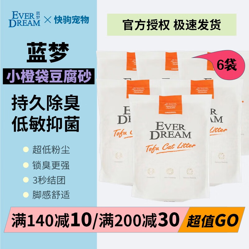 蓝梦(EVER DREAM)蓝梦猫砂天然钠基矿砂everdream抑菌活性炭除臭膨润土猫咪 小橙袋豆腐砂2.4kg*6包