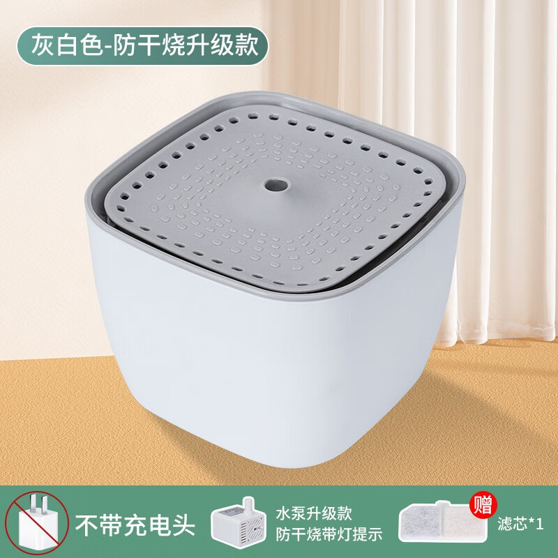 KellyPet猫咪饮水机循环自动大容量过滤流动活水喝水不湿嘴狗狗宠物饮水机 灰白色【有线版带灯防干烧】