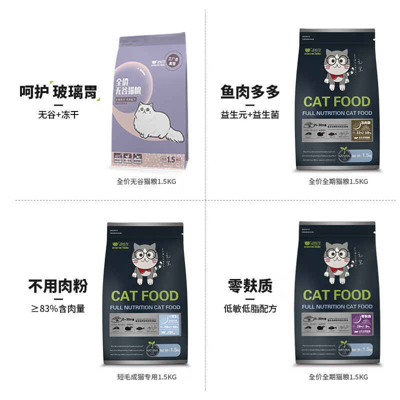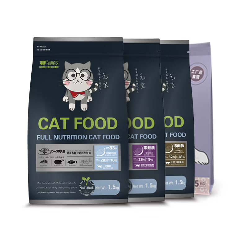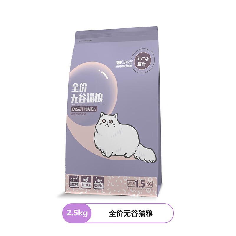 醇粹(Purich)趣友品牌猫粮猫主粮成幼猫高蛋白酶解 40蛋白无谷冻干全期(呵护肠胃) 1.5kg (1包3斤装)