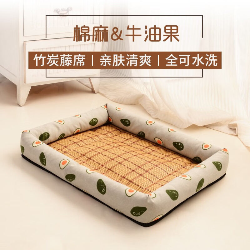 汪汪部落猫窝夏天冰丝凉窝泰迪比熊狗狗床四季宠物凉席窝猫冰垫子夏季猫窝 藤席-牛油果 S(40*31cm)