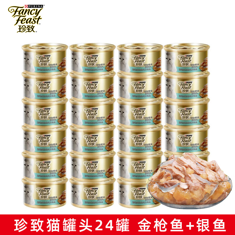 珍致(FancyFeast)猫罐头白肉泰国进口猫湿粮 宠物成幼猫金枪鱼猫零食营养食品 金枪鱼肉及银鱼24罐【肉冻】